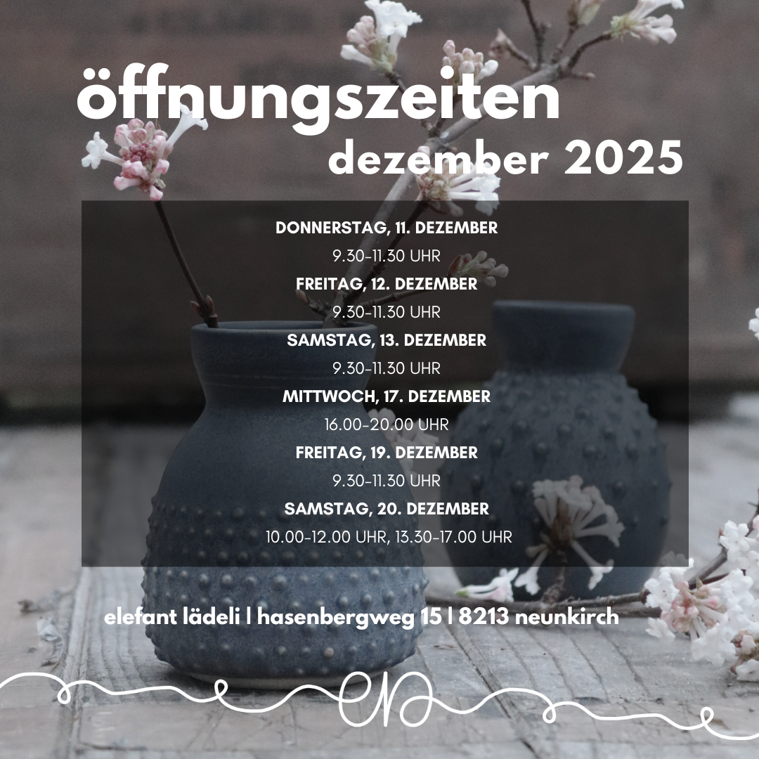 Auf mehrfachen Wunsch öffne ich das Elefant-Lädeli im Dezember noch ein paar Mal. (Siehe Grafik unten).